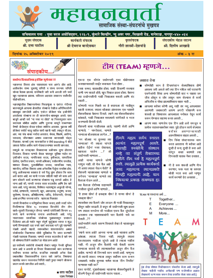 LEISA- Low External Inputs Sustainable Agriculture is a quarterly multi-national Magazine promoting sustainable agriculture with an Indian focus and International perspective. YRA has initiated it’s Marathi edition since 2014. Today magazine circulation has reached to 1500.Farmers Groups are reading articles collectively and started practices and is recognized as one of the primary sources of inspiration and to an extent practical knowledge on economical agriculture by many individuals and agencies involved in development sector as well as mainstream research and training. 88% of the readers are farmers of Maharashtra. 3% are reached to agro- academia’s, 3% to partners NGO who also work on agriculture and with farmers, 2% each to research institutes, government departments and rest 2% to other.