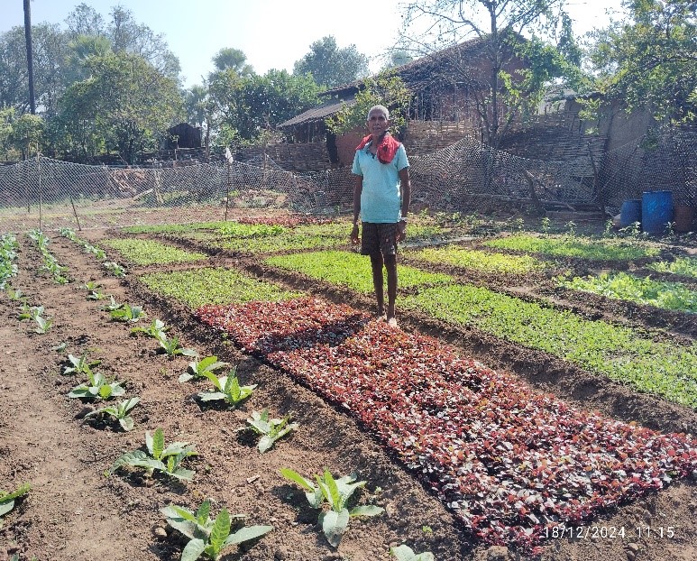 of the beds, Ensuring seed quality and seed selection and multiplication techniques, ways to supply water at regular intervals, the need of fencing, weeding techniques, the use of natural fertilizers such as compost. The small size if the plots at the proximity to the school and the limited labour requirement were not perceived and an extra burden and the workload was mostly performed by Manisha. She volunteered for the most important activities like timely provision of water, fencing and protection from monkeys. The establishment of the kitchen garden and adding to the skills of the student directly involved in the activities was only one way of building their capacity. This was not only limited of growing vegetables but quickly spread to include other issues they felt to be important. Different ways of preparing the vegetables were discussed among Manisha, School Sathi and Students for the ways that are more nutritious and healthy. Issues regarding general health were also brought up with parents. The initiative also saw the record the inputs and time spent on the kitchen gardening on the one hand and the produce they obtained. A kitchen garden can be a catalyst to introduce a community-based approach and for setting up small groups, especially women group. This is a critical factor in the culture where physical and social mobility of woman is limited. For the children, the garden provides a context for understanding seasonality and life cycles, an opportunity to work cooperatively on the real task. The garden created a common experience to build on in multiple settings- from class-room to celebration. Students understand the role of food in life. The garden allows them to improve nutrition and highlight healthy foods. It offers the opportunity to teach life skills such as gardening and cooking. Students value the garden- of pride and ownership which discouraged vandalism. The skills and messages students learn about healthy food in the school garden can be transferred back to their homes soon..